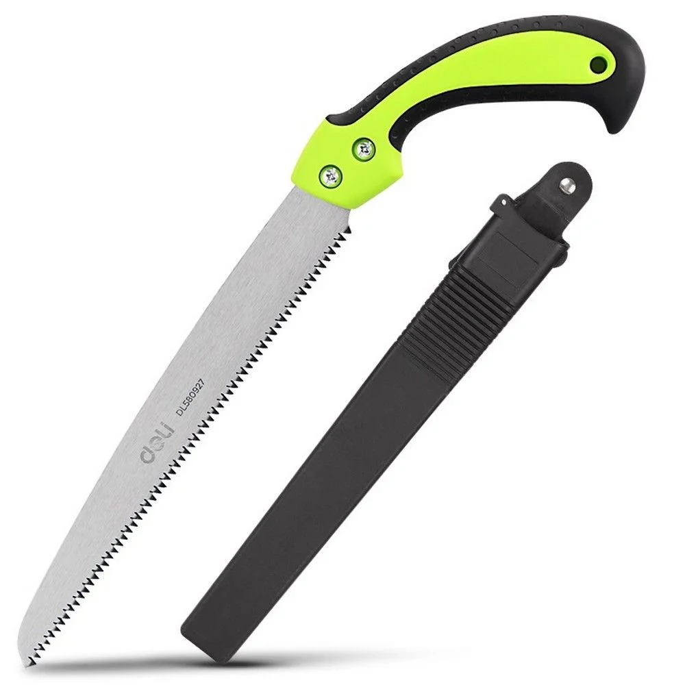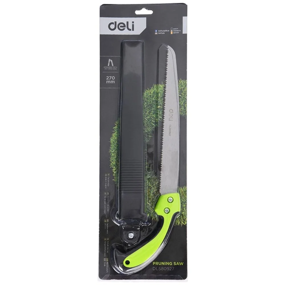 Пила садовая с ножнами 270 мм Deli DL580927 сталь 65Mn, шаг зубьев 7TPI, обрезиненая ручка, 3D заточ