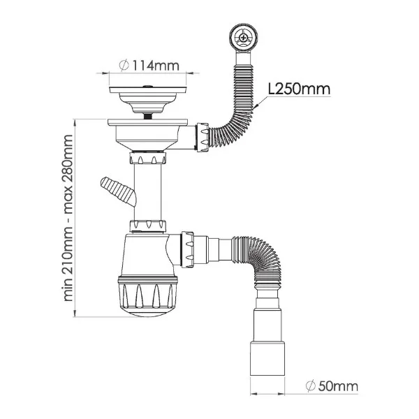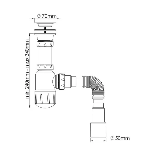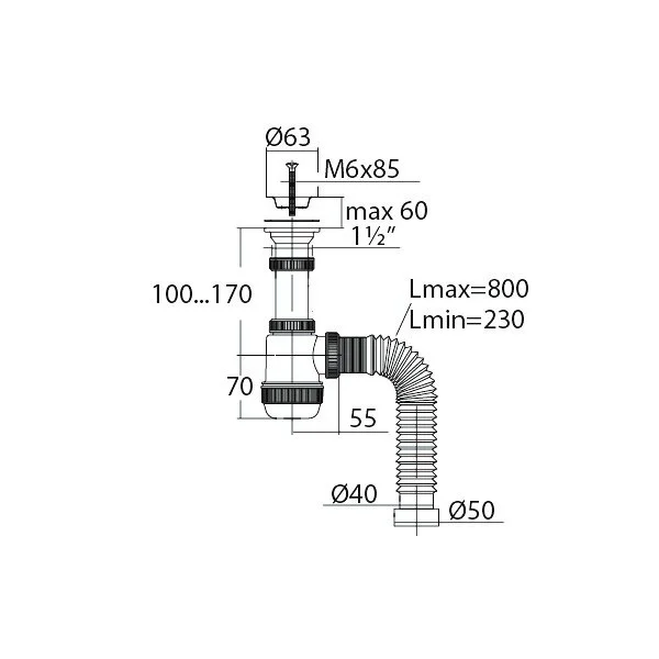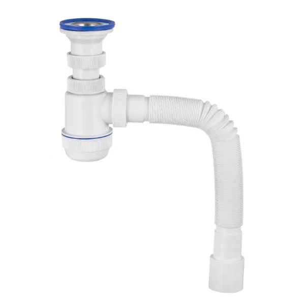 Сифон Мини Элит для ванн 1 1/2 х 40 мм с нержавеющими чашками d 40мм, перелив L800 мм, с гофротрубой